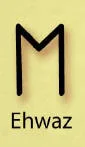Ehwaz is associated with the horse, a sacred animal to the Vikings, especially the horse that carried its rider into battle. It therefore represents a harmonious relationship as typified between a warrior and his horse. The rune, mentioned only in the Anglo-Saxon rune poem, emphasises the joy a horse brings to his rider and how it can make him feel like a prince or aethling.