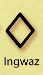 Like Jera and Berkano, Ingwaz is another fertility rune with powerful associations with protection, especially of the home. Ingwaz or Ing was the old Germanic Earth God, consort of Nerthus, the Earth Mother. Like many of the old Earth religions the God of the Corn died each year at harvest time and was reborn at the Mid-Winter Solstice to shoot into life again as vegetation in the early spring. Ing was traditionally the God of the hearth and the huge old fireplaces that had seats were called Inglenooks because the members of the household were contained close to the fire.
